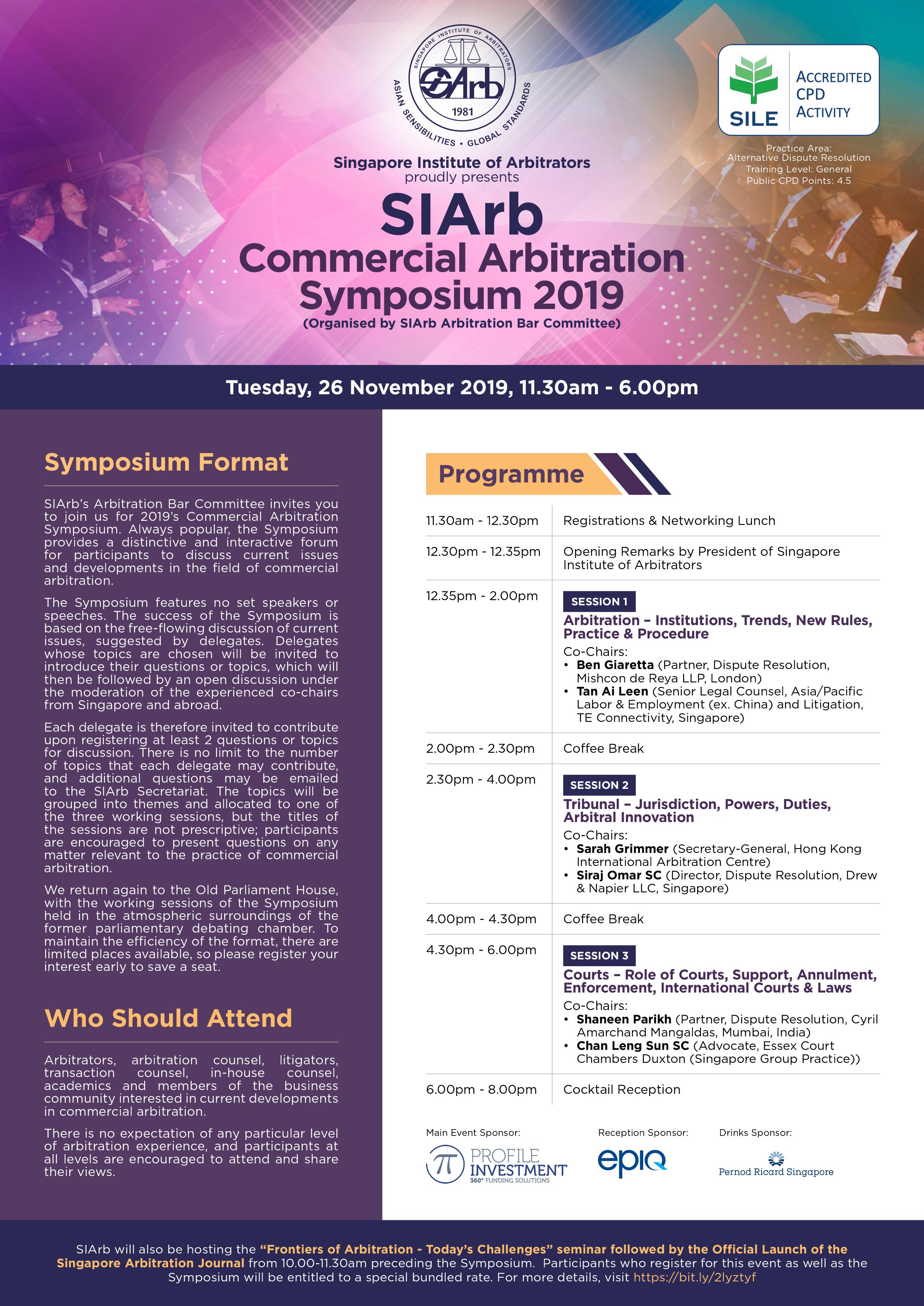 SIArb will also be hosting a seminar on “Frontiers of Arbitration - Today’s Challenges” followed by the Official Launch of the Singapore Arbitration Journal from 10.00-11.30am preceding the Symposium. Registrations are open and participants who register for this event as well as the Symposium will be entitled to a special bundled rate. For more details, click HERE.