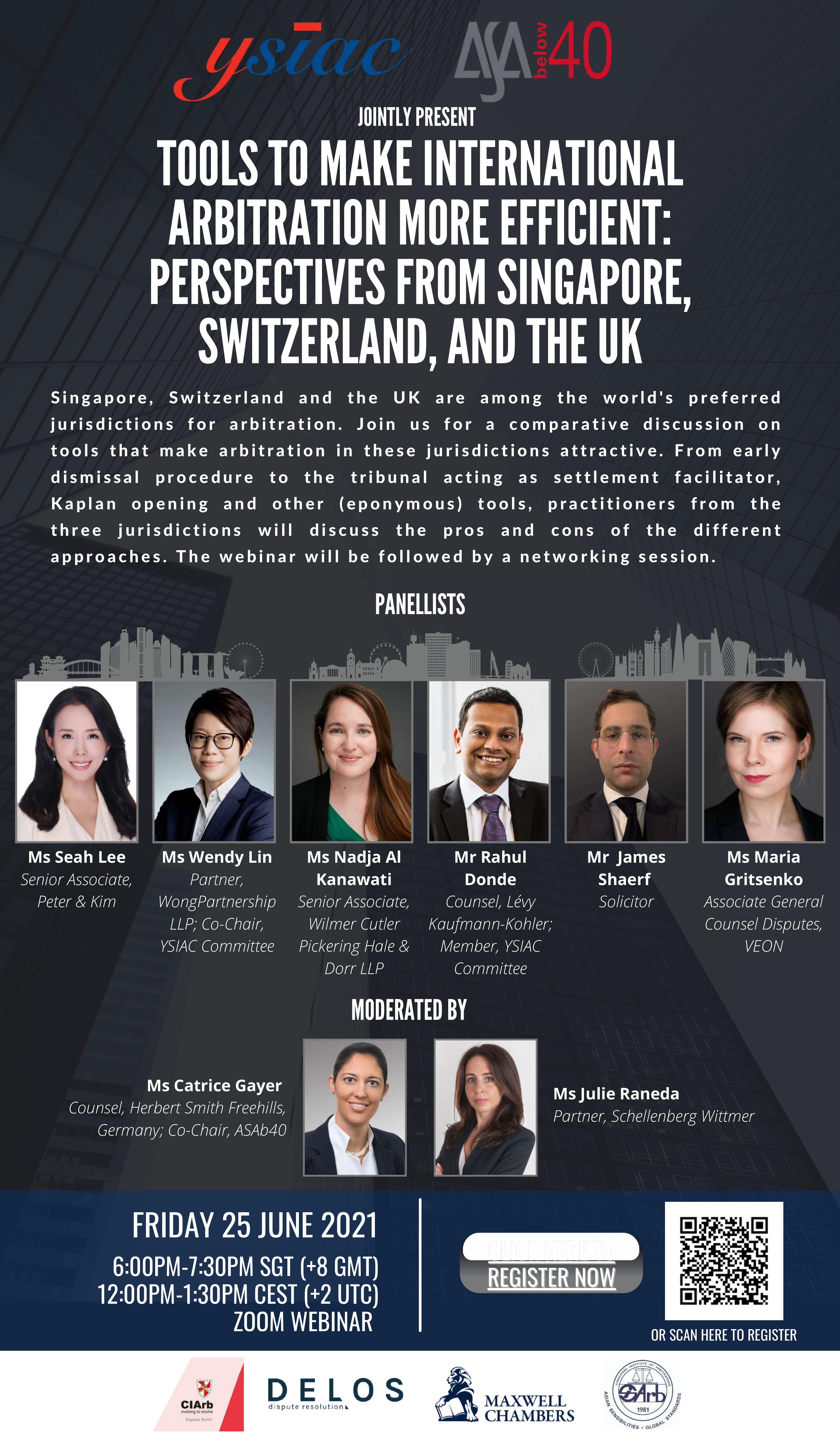 YSIAC-ASAb40 Webinar: Tools to Make International Arbitration More Efficient: Perspectives from Singapore, Switzerland, and the UK (25 June 2021)